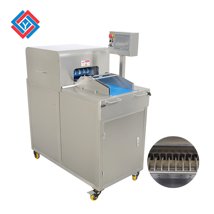這款切肉丁機(jī)整體采用了不銹鋼制作,機(jī)身鋼板厚度達(dá)到了3mm,表面使用了拋光拉絲處理工藝,優(yōu)化衛(wèi)生方便清洗,切肉丁機(jī)的刀片是不銹鋼材質(zhì),特別淬火加工過后,可用鋒利的刀片將鮮肉開條再切塊,切割紅殺肉塊的肉丁迅速且大小均勻,機(jī)身同時還采用了快拆式刀組,方便更換加工其他肉類,省去了大量的人工成本。